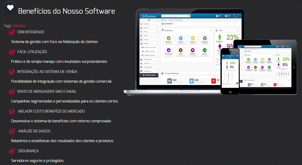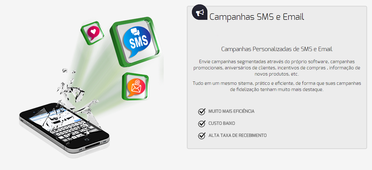 Diversas formas para facilitar a comunicação com seu cliente. Envio de e-mail marketing, agendamento de envios e comunicação através das redes sociais.As informações dos clientes, vendas e pontos ficam bem organizadas e podem ser acessadas de forma fácil, simples e rápida através de diversos filtros.